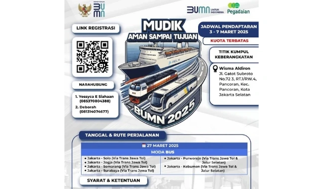 Headlines Headlines Pegadaian Kanwil IX Jakarta 2 Gelar Mudik Gratis 2025: Simak Syarat, Rute, dan Jadwalnya! By Andi Mardana • 4 March, 2025 • TRENDS.CO.ID, Jakarta – PT Pegadaian kembali menggelar program Mudik Gratis 2025 untuk masyarakat Jabodetabek, khususnya...